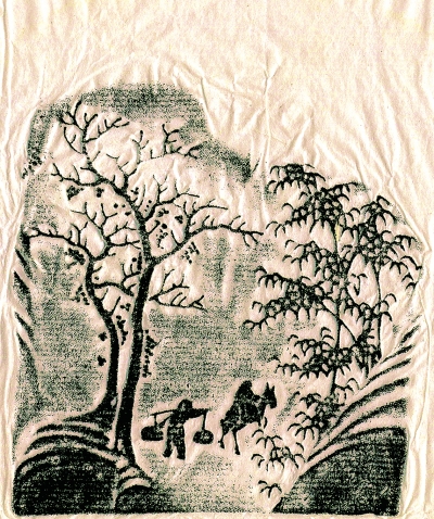 | 張敏德款樓閣人物雕漆圓盒拓片(元代) |
