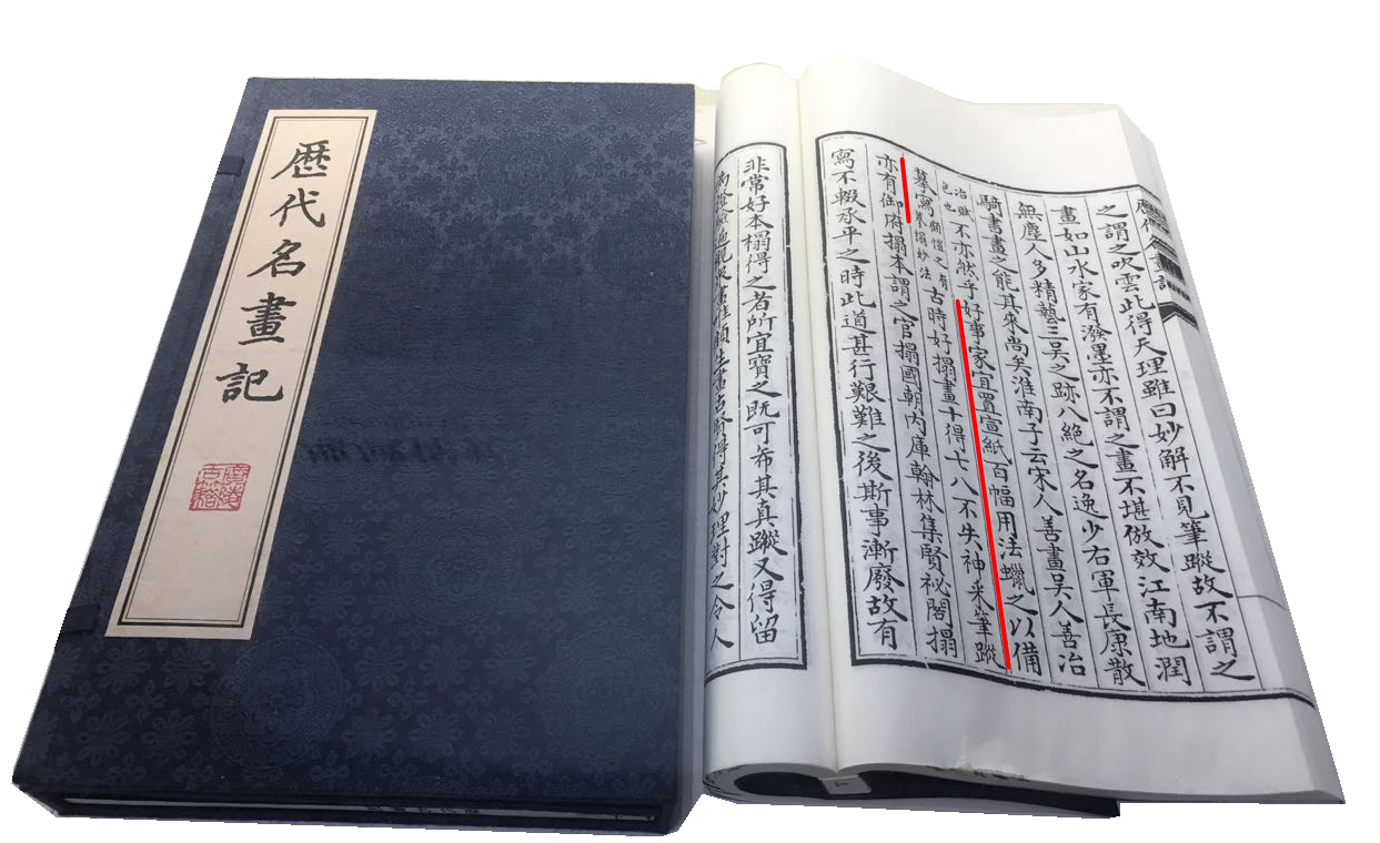 《歷代名畫記》是由曾任安徽舒州刺史、唐代著名繪畫理論家張彥遠(815-907年)在唐代大中元年(847年)所著,在其《論畫體工用拓寫》中說:“江東地潤無塵,人多精藝,三吳之跡,八絕之名,逸少右軍長康散騎,書畫之能其來尚矣,淮南子云:宋人善畫吳人善冶,不亦然乎。好事家宜置宣紙百幅,用法蠟之,以備摹寫。古人好拓畫,十得七八,不失神彩筆跡。亦有御府拓本,謂之官拓。”這是最早記載宣紙的歷史文獻,為后世研究宣紙起源提供了最基本的依據。