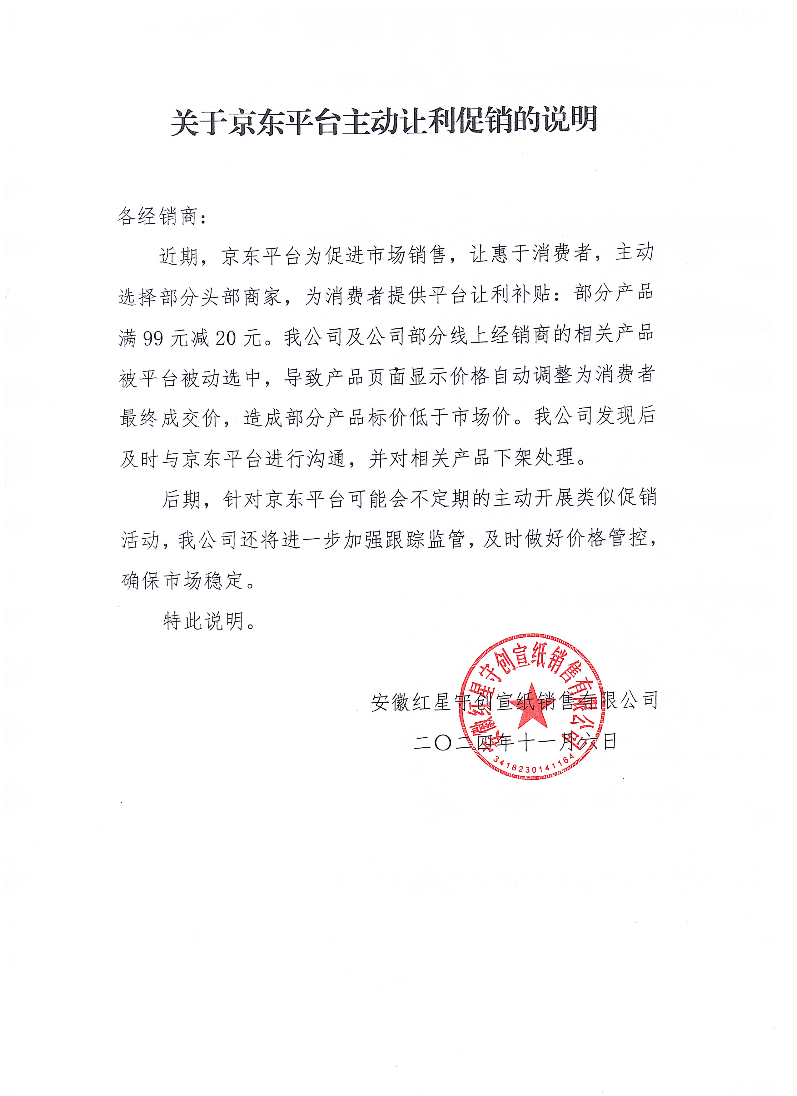 關于京東平臺主動讓利促銷的說明