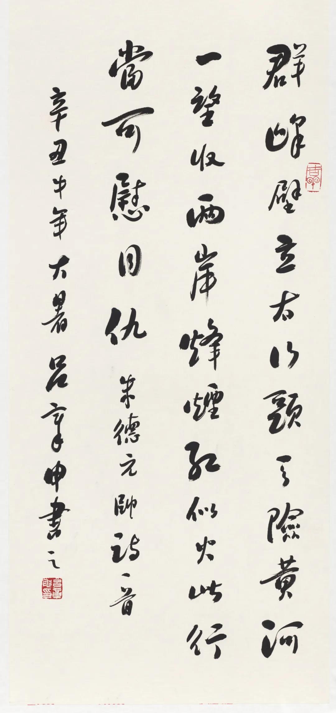 呂章申 朱德元帥詩一首100×50厘米釋文:群峰壁立太行頭,天險(xiǎn)黃河一望收。兩岸烽煙紅似火,此行當(dāng)可慰同仇。創(chuàng)作年代:2021年