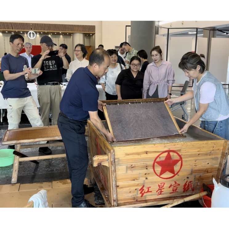 紙壽千年·禮贊中華 2024 年 9 月 27 日,同濟大學嘉定校區圖書館一樓大廳迎來了一場意義非凡的文化盛會 —— 同濟大學 & 中國宣紙股份有限公司 “致敬匠心 手書中國” 主題活動。 該活動由同濟大學黨委宣傳部、同濟大學語言文字工作委員會、上海高校中華優秀傳統文化育人聯盟指導,同濟大學圖書館、中國宣紙股份有限公司主辦,文榷堂、同濟大學教工書畫協會、中國宣紙博物館共同承辦。 開幕式上,同濟大學黨委副書記吳廣明發表致辭。在金秋時節,眾人齊聚同濟大學嘉定校區圖書館,共同慶祝中華人民共和國成立75周年并舉辦此次活動,強調要以習近平文化思想為引領,推進中國特色社會主義文化建設。宣紙作為中華優秀傳統文化載體,此次活動以其為載體回望傳統文化底蘊與民族品格。他提出三點期望:堅定文化自信,建構文化育人新模式;加強校地合作,打造文化弘揚新機制;深化科藝融合,探索文化傳承新內涵。最后,吳廣明書記要求廣大師生以此次活動為契機為實現中華民族偉大復興貢獻力量。 中國宣紙股份有限公司黨委副書記、副董事長、總經理朱大國表示,宣紙是千年傳統技藝,是文化瑰寶。紅星宣紙創建于 1951 年,具有紅色基因,作為行業龍頭,紅星宣紙深知傳承中華優秀傳統文化責任重大。在新時代,通過走進高校的形式走進大眾,讓宣紙藝術在校園綻放光彩,促進傳統文化與現代教育結合。 HONG XING XUAN PAPER 活動上,中國宣紙股份有限公司向同濟大學圖書館贈送紀念宣紙,彰顯對文化傳承的重視及與同濟大學的深厚情誼。同濟大學以禮回應贈予捐贈證書、致謝函交接,見證友好合作。 禮敬中華·名家講壇 活動伊始,禮敬中華名家講壇如同一盞明燈,照亮了大家對中華傳統文化的認知之路,中國科技史學會紙史專委會理事黃飛松的精彩講述,讓宣紙承載的千年文化內涵和匠心精神深入人心。 禮敬中華·手書中國 同濟大學中國書畫協會會長江理平老師現場試紙,他書寫的作品不僅具有極高的藝術價值,更傳遞了對學校和宣紙博物館的美好祝福。兩張作品分別贈予學校和宣紙博物館,成為了此次活動的珍貴紀念。 禮敬中華·匠心傳承 參與者們親身體驗了宣紙制作過程中的撈紙、曬紙環節,感受這項古老技藝的獨特魅力。撈紙和曬紙的每一個步驟都蘊含著匠人的智慧和心血,讓大家對宣紙制作的艱辛與精細有了切身的體會。 紅星宣紙對同濟大學的支持表示非常感謝,相信未來有更多合作。值此新中國成立75周年之際,祝福祖國繁榮昌盛,國泰民安。