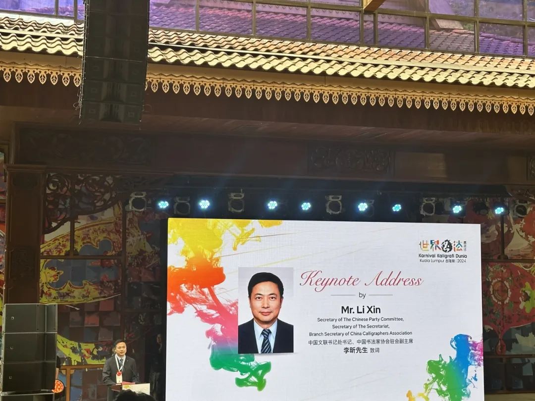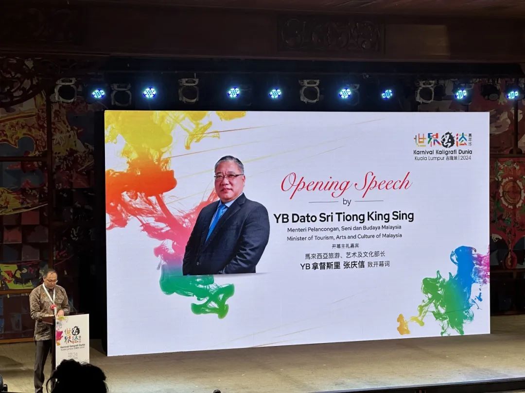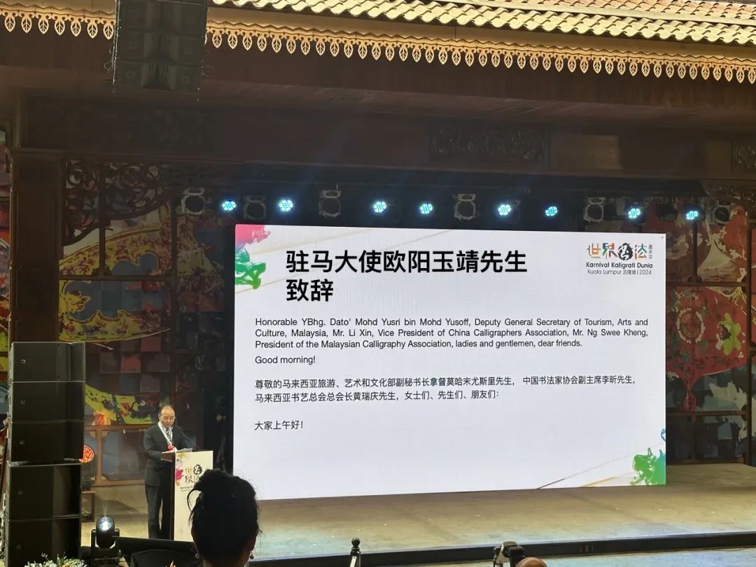中華人民共和國駐馬來西亞特命全權(quán)大使歐陽玉靖、馬來西亞旅游、藝術(shù)和文化部副秘書長莫哈末尤斯里、中國書法家協(xié)會駐會副主席李昕、馬來西亞書藝總會會長黃瑞慶、中國宣紙股份有限公司副總經(jīng)理羅鳴以及來自社會各界的600多名嘉賓共同見證了這一盛況。
