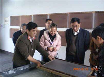 11月18日,國務(wù)院參事室副主任陳鶴良,中央文史研究館館員、中華書局原副主編程毅中等領(lǐng)導(dǎo)視察了涇縣中國宣紙文化園。公司董事長肖陽在宣紙文化園接待了各級(jí)領(lǐng)導(dǎo)。 在園區(qū)講解員的引領(lǐng)下,陳鶴良一行參觀了宣紙文化園各個(gè)車間,認(rèn)真了解了古法宣紙的制作工藝過程,對國寶宣紙博大精深的文化內(nèi)涵與藝術(shù)魅力贊嘆不已。在宣紙?bào)w驗(yàn)間,陳鶴良還興致勃勃地體驗(yàn)了一下?lián)萍埞ば颍瑩浦屏艘粡垘в袀€(gè)人生肖的體驗(yàn)宣。 參觀結(jié)束后,陳鶴良主任欣然為宣紙文化園簽名留念。