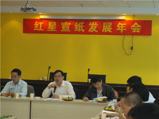 2009年2月13日,中國(guó)宣紙集團(tuán)公司在廣州舉行“紅星宣紙發(fā)展年會(huì)”,公司董事長(zhǎng)肖陽(yáng)同志主持會(huì)議,來(lái)自部分主管部門(mén)、縣直單位、金融系統(tǒng)的主要負(fù)責(zé)人及部分重要客戶參加了會(huì)議。會(huì)議聽(tīng)取了公司2008年各項(xiàng)工作開(kāi)展情況的匯報(bào),并就下一步工作目標(biāo)展開(kāi)研討,共商公司發(fā)展大計(jì)。縣委常委、副縣長(zhǎng)左銀海同志到會(huì)作了重要講話。會(huì)議結(jié)束后,專門(mén)針對(duì)廣州一地的宣紙市場(chǎng)進(jìn)行了考察。