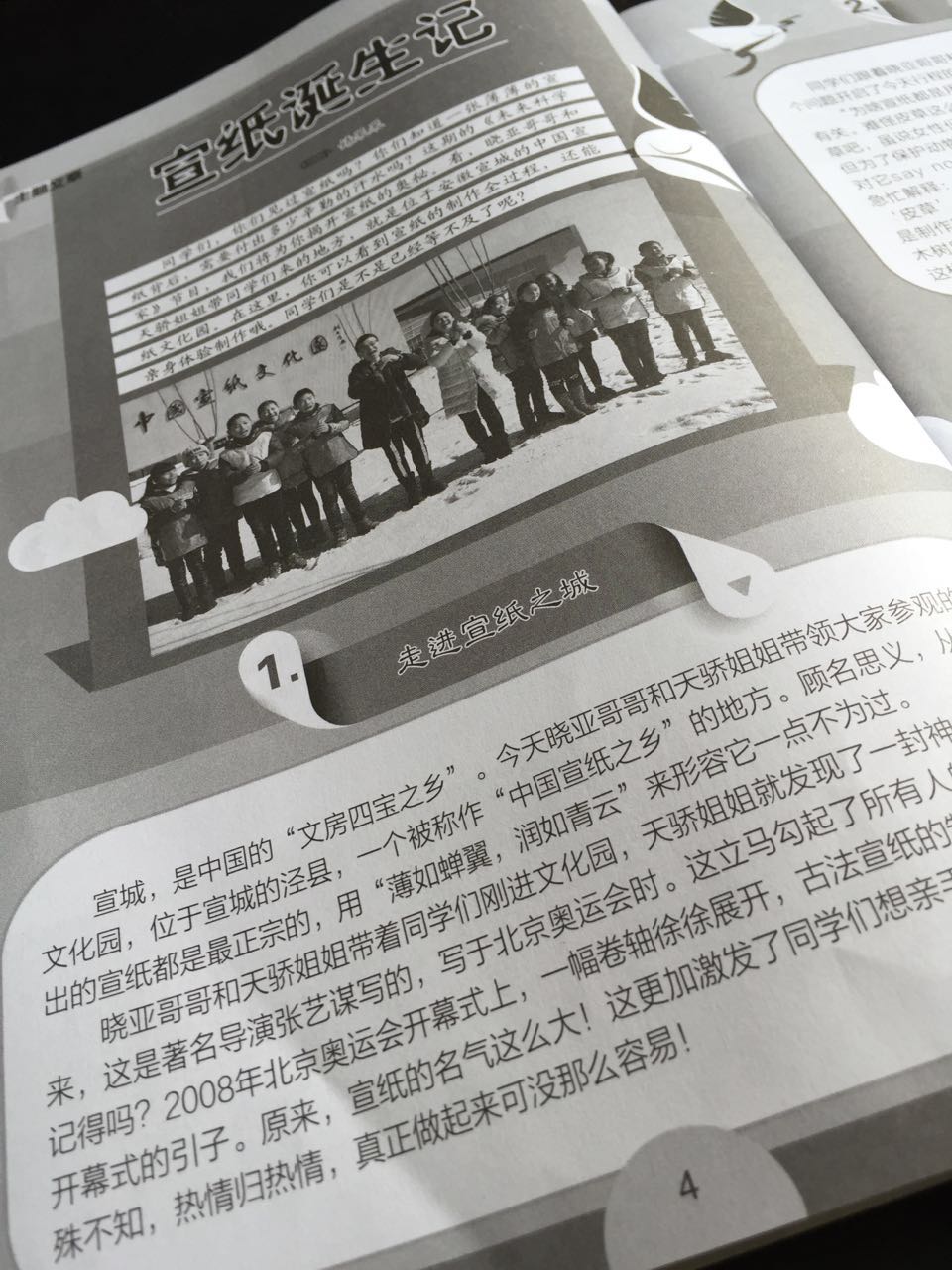 沿溪紙碓無停息,一片舂聲撼夕陽。2016年5月的這一期由江蘇教育頻道編輯部主辦的《未來科學家》雜志上這樣形容夕陽降臨下的中國宣紙文化園。今年年初,江蘇教育電視臺未來科學家欄目組來我公司拍攝了一期春節特別節目,節目播出后,收到了廣大青少年的熱烈反響。2016年5月,《未來科學家》雜志又以宣紙為主題,刊登了《宣紙誕生記》、《紙為你來》等文章,詳細介紹了宣紙的歷史文化和宣紙技藝以及當時的拍攝情景,還刊登了周東紅的人物專訪《不忘初心,方得始終》,向在自己崗位上兢兢業業的工作者們致敬,最后還刊登了烏溪小學葉晨陽的一篇感想《薄薄宣紙不簡單》,小學生葉晨陽在參與完拍攝以后發出了宣紙是多么古老,多么獨特,不愧是紙壽千年,千年紙王的感嘆。