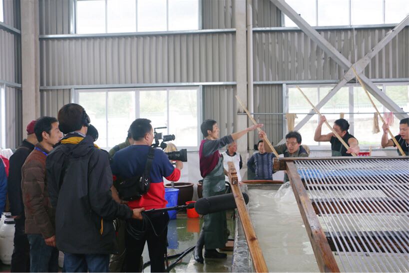 榮獲吉尼斯世界記錄的三丈三巨宣今天恢復生產啦!三丈三自面世以來,以其對宣紙規制的歷史性突破、無與倫比的生產場面、極高的藝術載體與收藏價值,得到了社會各界、攝影家、書畫家和市場的厚愛與贊譽。今天,又一央視大型紀錄片將鏡頭聚焦三丈三巨宣。下面,讓小編帶你感受震撼的現場!