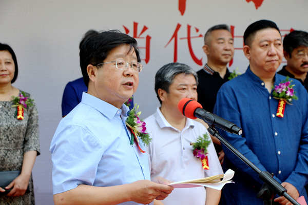 中國美術家協會理事、活動管理處處長杜松儒受中國美術家協會分黨組書記、駐會副主席、藝術委員會主任徐里先生委托宣讀賀信,代表中國美術家協會表示誠摯的祝賀。在賀信中表示,我們正處于新時代、跨入新征程,文藝事業、美術事業正面臨難得的歷史機遇,美術家們更應在習近平新時代中國特色社會主義思想指引下,堅定文化自信,堅持守正創新,努力創作出更多反映時代精神,謳歌黨、謳歌祖國、謳歌人民、謳歌英雄的精品力作。書畫家更應當了解宣紙歷史,應當了解宣紙文化,希望并呼吁更多優秀的書畫家響應十九大號召,常來涇縣采風寫生、創作交流,送文化下基層接地氣,不斷豐富宣紙文化的內涵。