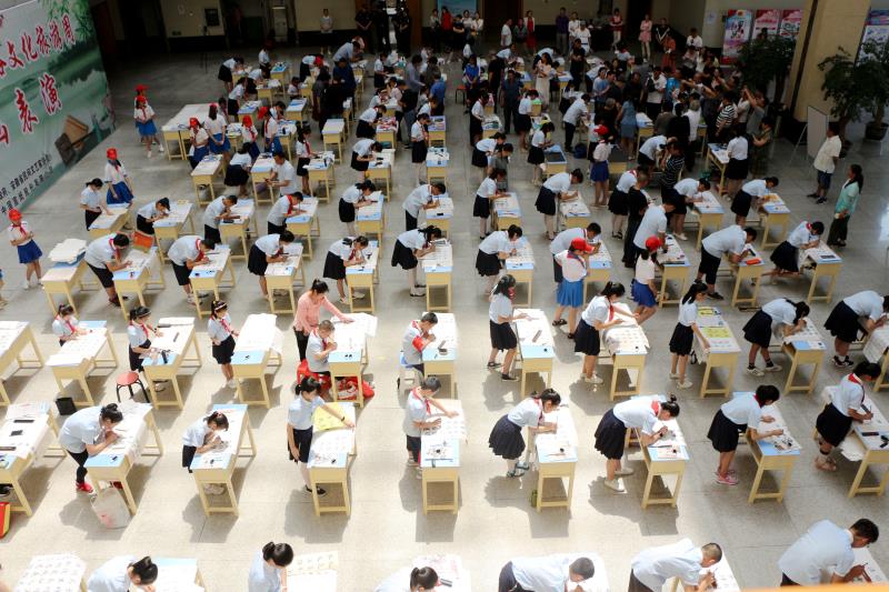 上午開幕式后,參展書畫家赴涇縣人民政府一樓大廳參加了少兒書畫表演活動,現場指導少兒進行書畫創作。