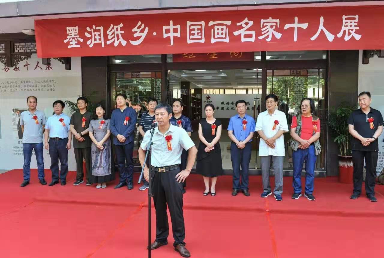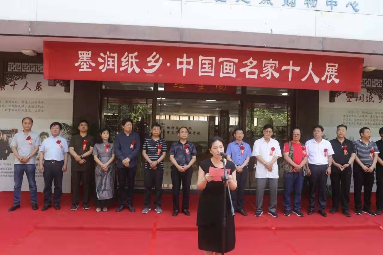 觀瀑堂文化藝術公司總經理吳衛紅在致辭中表示,作為本次展覽的承辦人、聯系人,對十位名家應邀遠道而來舉辦畫展表示衷心感謝,對縣委縣政府和中國宣紙股份有限公司的大力支持表示感謝,對到場的嘉賓朋友們表示感謝。
