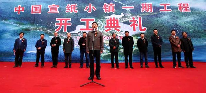 ??馬文波致辭,他說,小鎮的建成對于進一步保護和傳承宣紙工藝、繁榮發展涇縣文化旅游必將產生積極而重要的推動作用。他要求,縣直有關部門和屬地鄉鎮要堅持經濟工作項目化、項目工作責任化,按照建設“四個涇縣”、實施“五大會戰”的工作要求,在項目落地、施工保障、配合協調上狠下功夫,為項目順利建設提供有力支撐;施工單位要嚴格按照規范、科學施工,加快進度,確保工程質量。