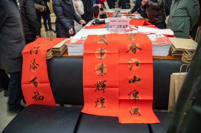 在紅星美術(shù)館展廳內(nèi),參展的作品琳瑯滿目,觀展的市民絡(luò)繹不絕。參展書畫家不斷揮毫,為市民們寫下一幅幅對(duì)聯(lián)和一張張“福”字,受到了熱烈歡迎和好評(píng)。