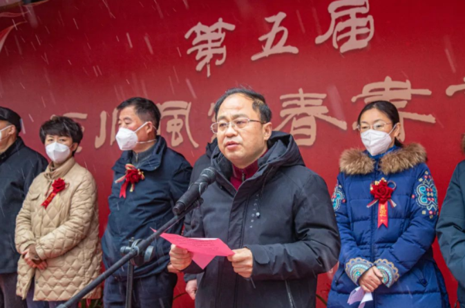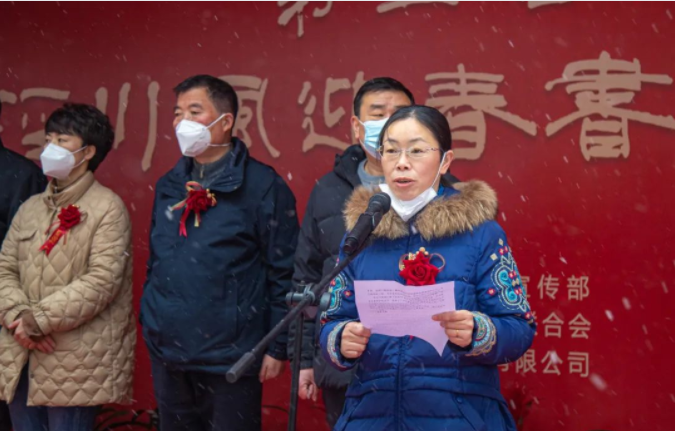 縣政府副縣長(zhǎng)黃凰在致辭中指出,代表勞動(dòng)人民智慧結(jié)晶的國(guó)寶宣紙,讓中國(guó)書畫風(fēng)生水起、靈氣無(wú)限,備受廣大書畫藝術(shù)家的青睞,為中國(guó)書畫藝術(shù)的發(fā)展,為弘揚(yáng)中華文明、傳承優(yōu)秀文化,發(fā)揮著不可替代的作用。近年來(lái),涇縣乘著堅(jiān)定文化自信、振興傳統(tǒng)文化的東風(fēng),始終把宣紙產(chǎn)業(yè)發(fā)展擺在突出位置,積極支持宣紙集團(tuán)做大做強(qiáng),強(qiáng)力推進(jìn)宣紙小鎮(zhèn)建設(shè),持續(xù)舉辦宣紙文化藝術(shù)節(jié),精心組織開展展覽創(chuàng)作、藝術(shù)寫生、書畫交易等活動(dòng),致力打造文化名縣。本屆迎新春書畫展是涇縣美術(shù)創(chuàng)作成果的又一次高水平展示,向全縣人民奉獻(xiàn)了一場(chǎng)文化藝術(shù)大餐,為繁榮和發(fā)展我縣文化事業(yè)做出了貢獻(xiàn)。