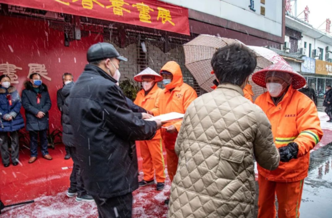 開幕式上,縣人大副主任宋軍、縣政府副縣長(zhǎng)黃凰、縣政協(xié)副主席程德修、縣書協(xié)主席管兵共同向四位環(huán)衛(wèi)工人代表贈(zèng)送春聯(lián)、“福”字,表達(dá)了對(duì)“城市美容師”辛勤勞作創(chuàng)造美好環(huán)境的敬意和誠(chéng)摯祝福。