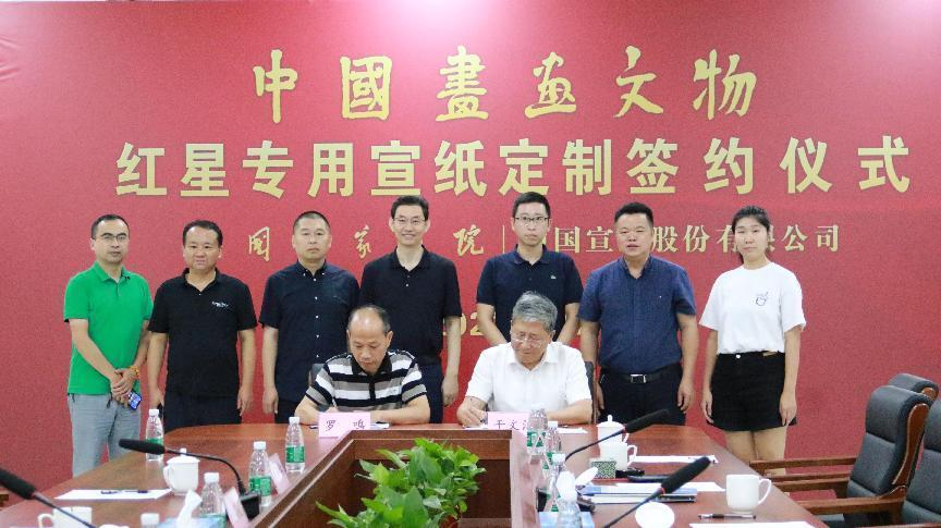 2023年8月17日下午,“中國畫 畫文物”寫生創作活動紅星專用宣紙定制簽約儀式在中國國家畫院明德樓舉行。中國國家畫院黨委書記燕東升、副院長于文江,中國宣紙股份有限公司黨委書記、董事長趙胡鯤、副總經理羅鳴等出席簽約儀式。