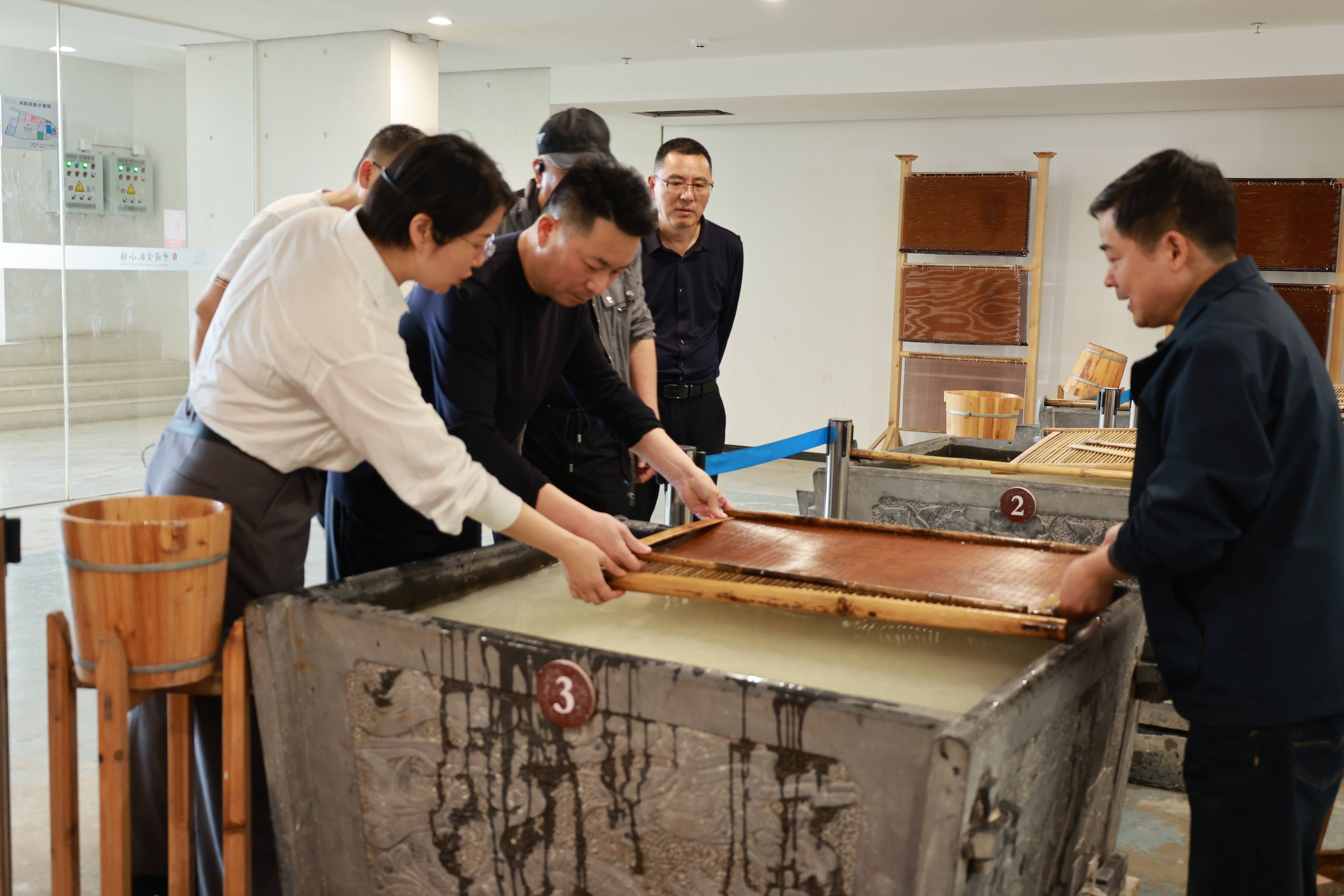 在文化園的國紙客廳,嘉賓們觀看了宣紙制作的撈、曬、剪工藝,還親自體驗了宣紙制作技藝,深刻體會到非遺傳承的不易。