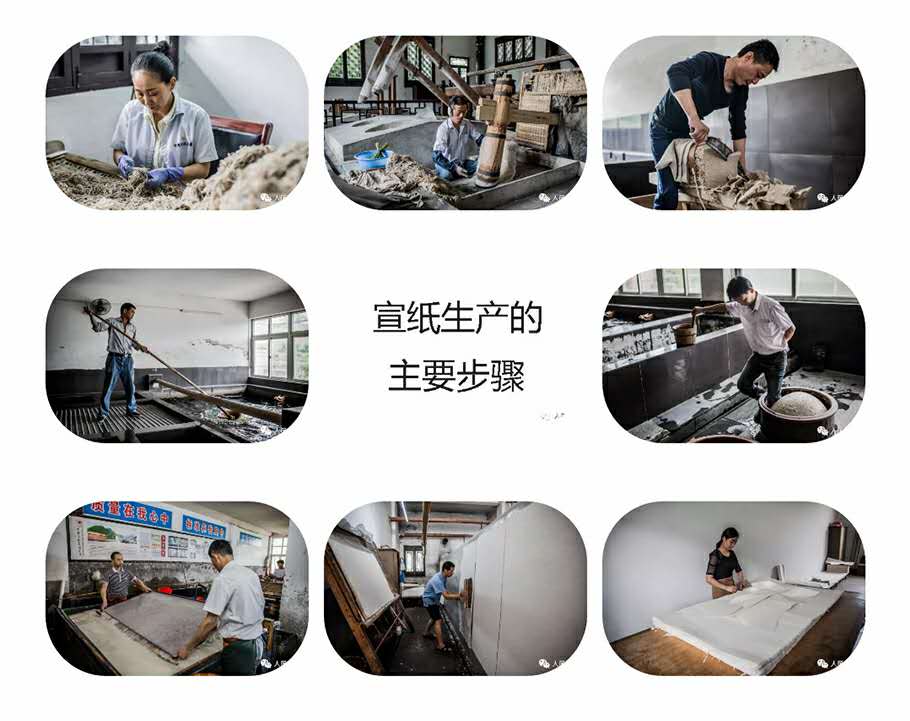 宣紙生產從原料制作到成紙需經100多道傳統手工工序,歷時三年。主要包括皮草選撿、碓皮、切皮、攪拌、踏料、撈紙、曬紙、檢驗等。