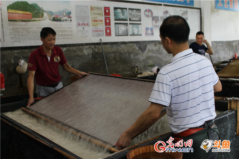 在部分斗魚網友看來周東紅和戴勝所在的古法車間主要是供游客參觀,對工作量要求勢必沒有那么嚴苛,周東紅連連擺手,告訴網友其實和在大廠的車間是一樣的,每天要撈900-950張四尺宣紙。當然,對于周東紅而言這當然不是最高工作量,高峰時一天撈過1400張。因為技藝精湛,周東紅帶過了徒弟有20多個,事實上,在技術崗位帶徒弟并不是一件費力討好的事,周東紅說,帶徒弟就意味著有好幾個月廢品率會提升,影響產量不說,也影響對自己業績的考核,所以廠里有許多師傅不愛帶徒弟。但他覺得既然是工匠,那只有傳承下去,手藝才能有延續,否則等老一輩干不動了,技藝也就漸漸失傳,這對于一個千年都靠著宣紙制作繁衍生息的地方來說,就太悲哀了。